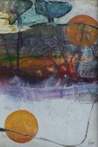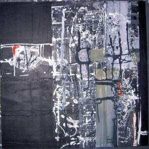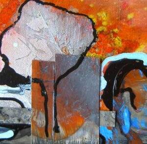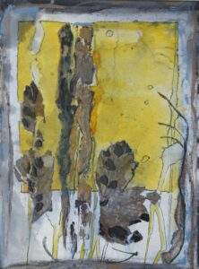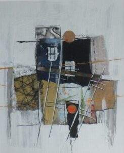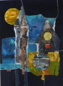 49 VERSTILD 1 acryl, gemengde techniek, collage op karton van 20 bij 27