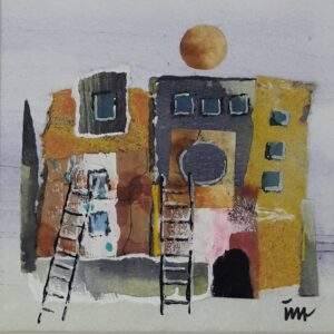 1 HUISJES 1 Acryl, collage 15 bij 15