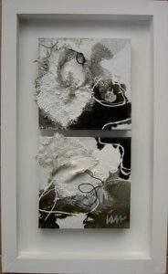 2 ZWART WIT Acryl, gemengde techniek, collage in baklijst van 37 bij 61