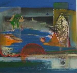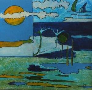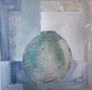 9 KIJKEN OVER HET MEER Acryl Gemengde techniek op doek 30 bij 30 in baklijst (2)