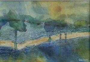 27 ZANDWEG IN DE ZON Acryl op karton van 20 bij 30