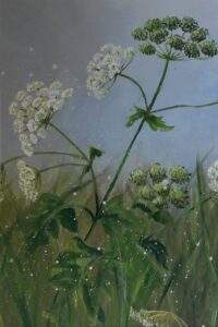 34 ENGELWORTEL Acryl op papier in aluminium lijst met passe partout van 55 van 75