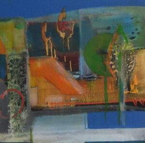 48 VERBONDEN 2 Acryl, collage op karton van 20 bij 27