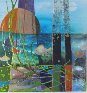 63 ONDERWATER Acryl, gemengde techniek op doek van 30 bij 40