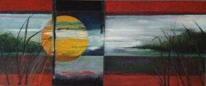23 DE ZON IN HET WATER Acryl op karton in zilverkleurige aluminium lijst van 40 bij 50 met passe partout