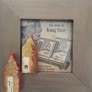 23 HOGEROP 7 Acryl, collage in wit houten lijstje met passe partout en glas van 22 bij 22
